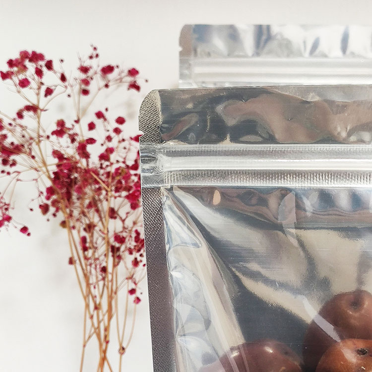 Aluminum Composite Bag has one transparent side, which can be seen clearly the objects inside. Another side is opaque, durable and shining. The bottom design is self-supporting, can be stand-up on the table.